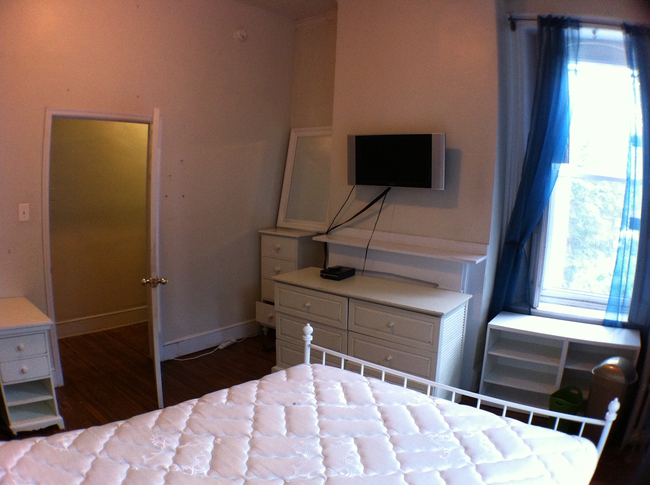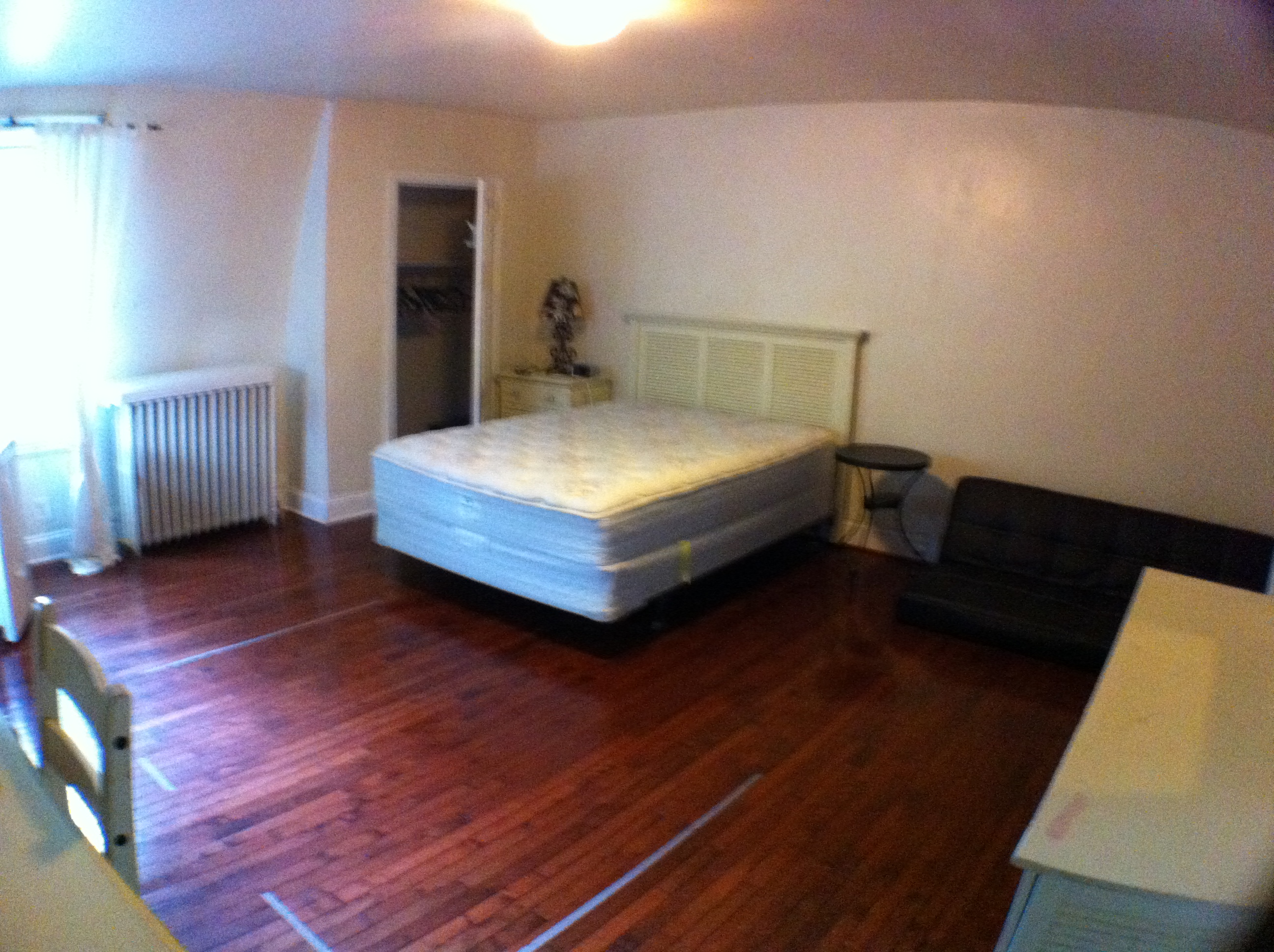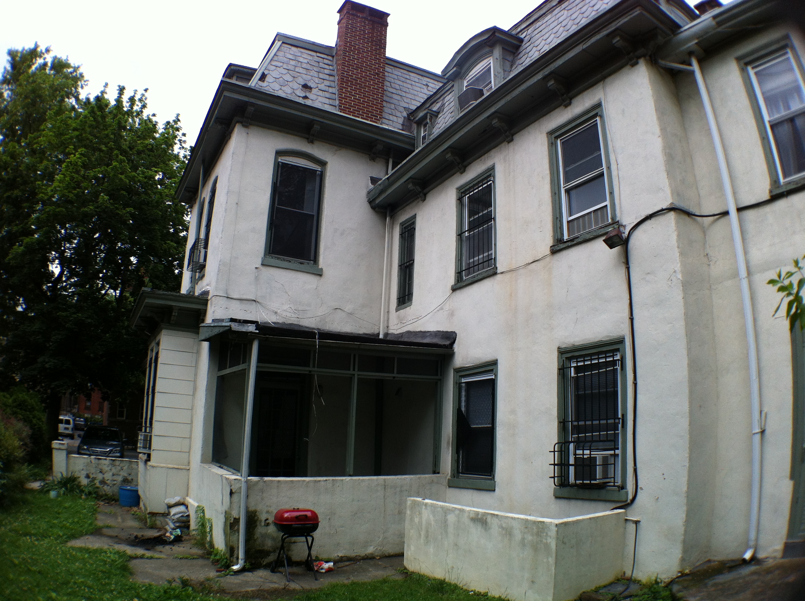 This is a beautiful and very spacious Victorian twin house built around the 1860s. There are many windows in the building providing lots of natural lighting. Outside, there is a driveway that can hold up to 3 cars, and a large backyard. The first floor has an entry hallway; a large living room with tall windows; a kitchen with a gas stove, dishwasher, and refrigerator, and a small porch overlooking the backyard; a bathroom with ceramic tile flooring and tub; a bedroom off the rear hallway; and a rear bedroom with direct access to the backyard and a private bathroom, also with a ceramic tile floor and tub. The second floor has a large front bedroom; a middle bedroom; a bathroom with a ceramic tile floor and shower stall; a kitchen with a gas stove and refrigerator; and a rear bedroom with a private bathroom with ceramic tile flooring and a tub. The third floor has a large front bedroom; a middle bedroom; a bathroom with ceramic tile flooring and a tub; and a rear bedroom as well. The large basement has mechanical systems and a washer and dryer. This building has central air conditioning. |