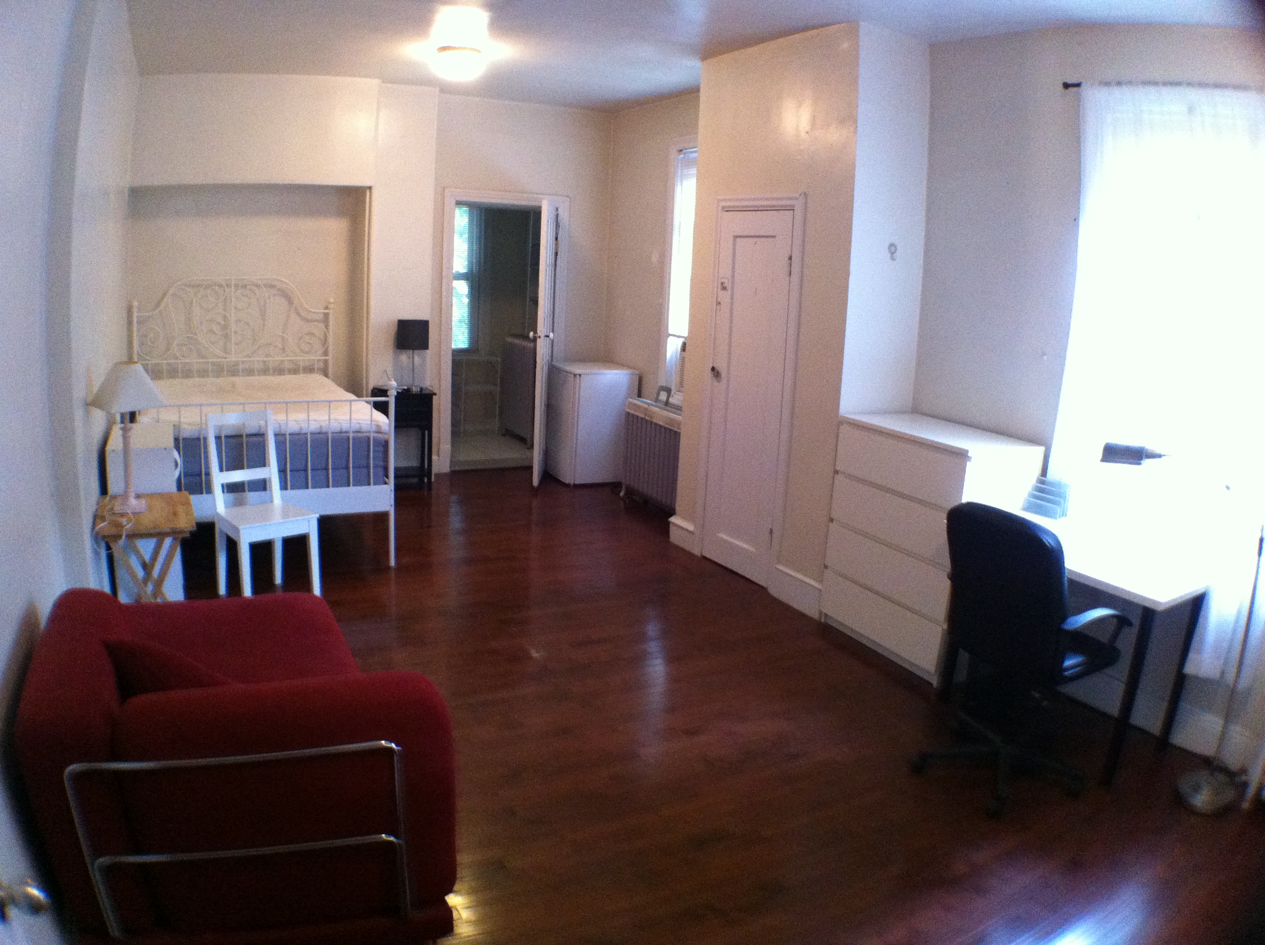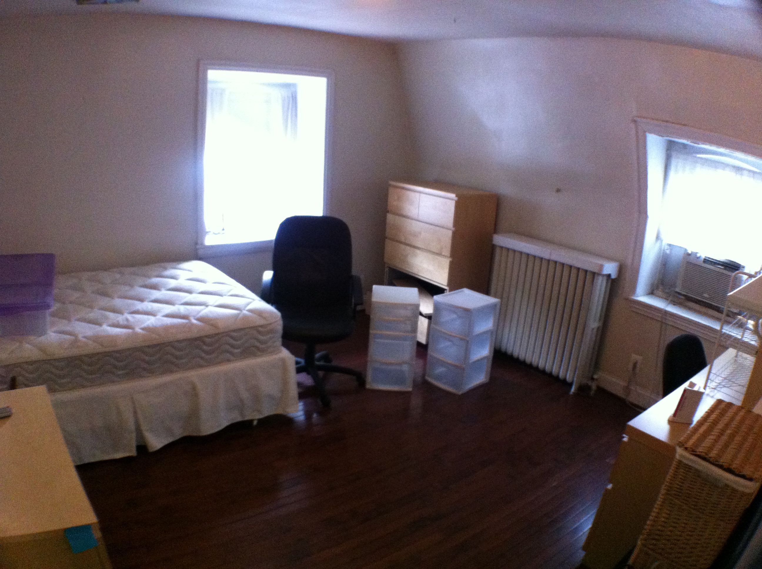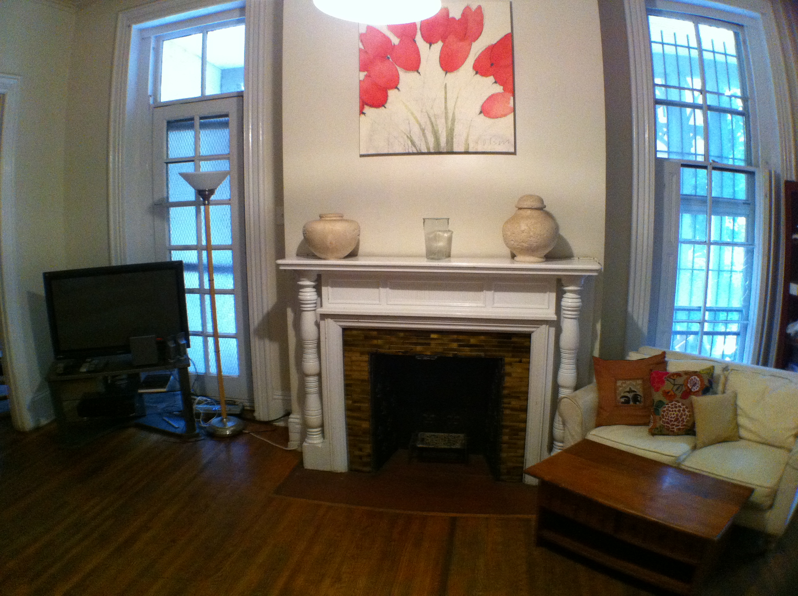 This is a beautiful and very spacious Victorian twin house built around the 1860s. There are many windows in the building providing lots of natural lighting. Outside, there is a driveway that can hold up to 3 cars, and a large backyard. The first floor has an entry hallway; a large living room with tall windows; a kitchen with a gas stove, dishwasher, and refrigerator, and a small porch overlooking the backyard; a bathroom with ceramic tile flooring and tub; a bedroom off the rear hallway; and a rear bedroom with direct access to the backyard and a private bathroom, also with a ceramic tile floor and tub. The second floor has a large front bedroom; a middle bedroom; a bathroom with a ceramic tile floor and shower stall; a kitchen with a gas stove and refrigerator; and a rear bedroom with a private bathroom with ceramic tile flooring and a tub. The third floor has a large front bedroom; a middle bedroom; a bathroom with ceramic tile flooring and a tub; and a rear bedroom as well. The large basement has mechanical systems and a washer and dryer. This building has central air conditioning. |
